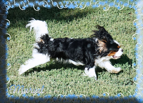 Marvel's litter mate (from 7 pups,) Marmalade, now Penelope! Not everyone can pamper a coat like her parents have!